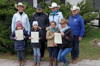 Unter Beobachtung von Barbara Hengge und Sonja Kroneis wurden die Pferde geputzt, Fragen beantwortet sowie Führen der Pferde zur Reithalle. Mit Stolz zeigten sie den Prüferinnen wie sie die Pferde zuerst im Hufschlag mit Richtungswechsel reiten konnten und dann lenkten sie ihre Pferde im Schritt und Trab durch einen leichten Trail-Parcours.