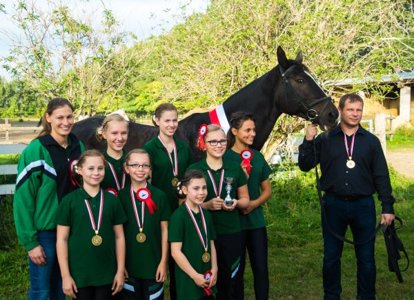 Der Gruppen-Landesmeistertitel ging an den URV St. Stephan-Wien Süssenbrunn: Ambra Chyba, Rebecca Spadinger, Sarah Ziegelwanger, Annina Haider, Nikola, Haider, Sydney Marker, Isabell Höhl sowie Nora Braun mit Longenführer Werner Marker.
